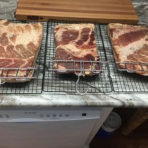 Got a belly from my Grandson, SO I MADE BACON , steps & q-view galore