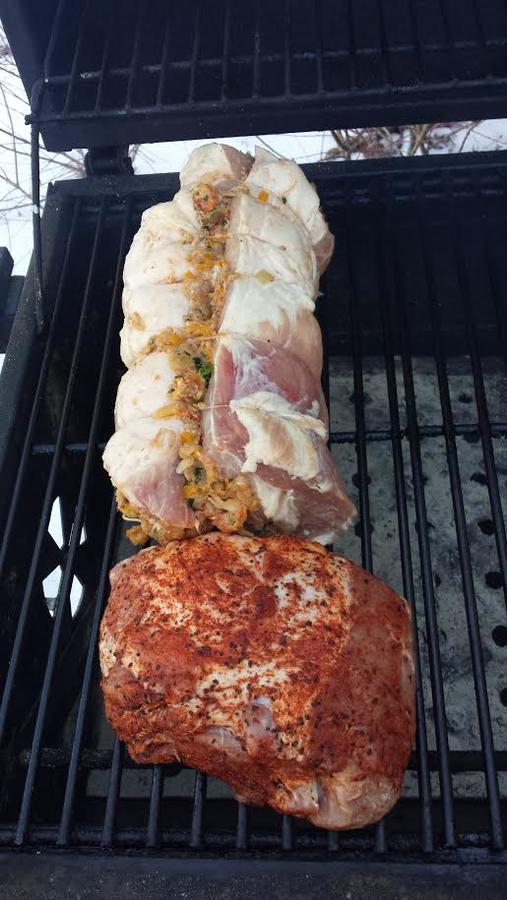 Cajun seafood stuffed pork loin and crawfish/crab/"tasso" etouffee--NOW WITH QVIEW!!