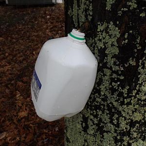 This is how I hang my buckets. Drill the hole, tap in the spile, hang a gallon milk jug by ZipTie to the hook. Some people say "What about the rain water?" Never had an issue. YMMV.