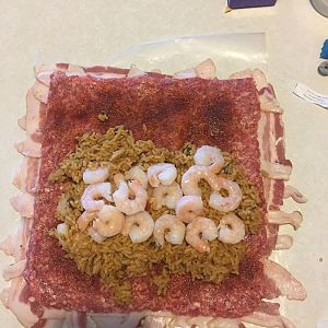 I was thinking about doing a fattie with jambalaya shrimp and sausage. My question would be if I used the boxed jambalaya cooked it at stuffed the fattie and then smoked it so you think it would dry out the rice?