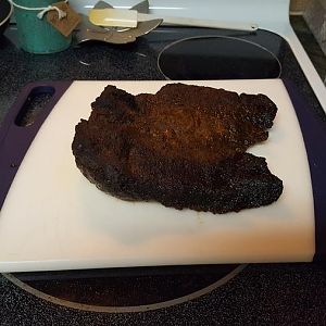 So here's an update. I dropedbthe point and the flat steady at 235 for the first 3 hours using a combination of apple and mesquite. Then I dropped the temp to 225. At around 6 hours I hit the stall sobibwrapped in foil and went to bed. It was midnight. I woke around 6am and the internal temp was...
