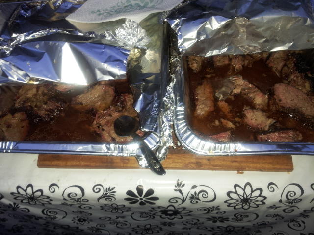 We got chuckies and ribs up top and monster butt, wings, smoked sausage, jalapeño cheddar sausage and the tough ribs from Friday being tenderizing in foil.