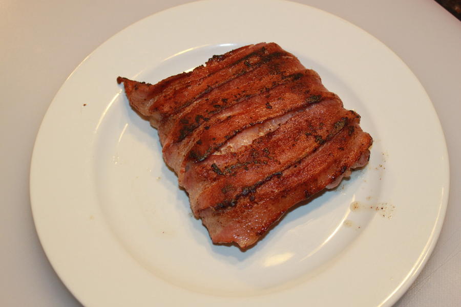 The double wrap of the bacon didn't allow for the inside layer to get cooked at all. The bacon started coming apart as it cooked and shrunk. The bread was a grease sponge.