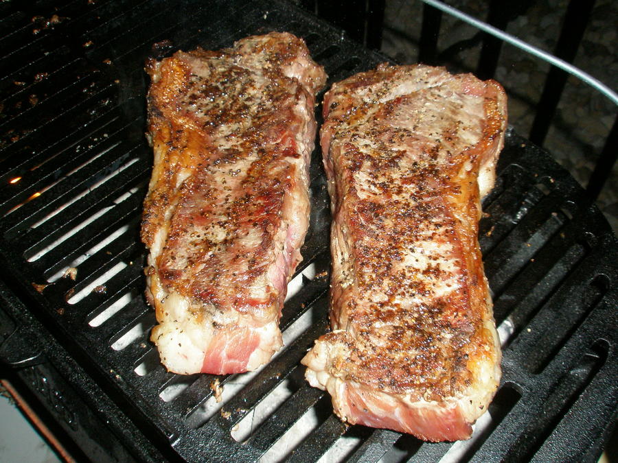 When the steaks hit that thick cast iron grate you hear a loud sizzle.  You just know that you're getting a great char on the meat.