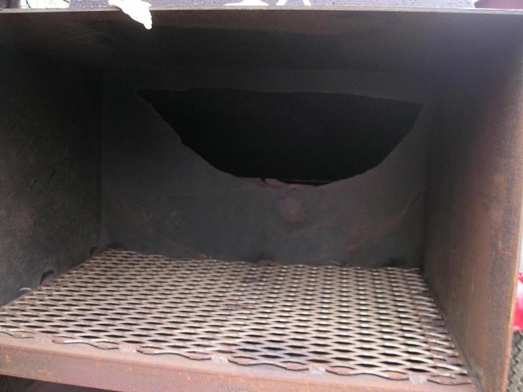 This is the beams custom smoker we just got delivered. And after getting screamed at when we called to complain, he just doesnt return calls now or hangs up on us. It showed up with rusted fenders and paint missing. Extremely poor pitted welds, a hole in the top of the smoker. If you notice the warming box pic you'll see light coming through on the bottom left. Its not welded in that corner at all. The electrical wiring is electrical taped to frame, there is NO DAMPERS in anyway to control heat. Just wide open holes with expanded metal over them. It showed up with no temperature guages, it has no handles on to racks, they left metal from cutouts in bottom of chamber. They left everything on bottom that makes it a propane tank, the plate they used on back to cap cooking chamber was never grinded down, is all sticking up and jagged, nothing as far as doors seal up to prevent heat loss, the cutouts are jagged and cut any old way. This smoker is the absolute worst I've ever owned. I wish I could warn the poor people on ebay that are buying these, they have no idea. Just look at the pics, Don't you want to rush right now and buy one. Please warn others about the poor work and attitude of Beams Custom Smokers. It also came with no temp gauges that we had to go buy at a local store. Mr Beam told us to go to hell when we called for the 3rd time for them. This smoker is impossible to cook on. No temp control, holes everywhere, leaks in all doors  ............