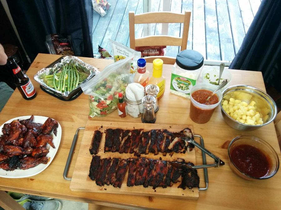 Had some friends over for my 30th birthday yesterday and I smoked up some side ribs with chicken drumsticks and whole wings. I used Jeff's method for his Honey BBQ Smoked Wings recipe for the chicken. Coated with Jeff's Rub for 2 hours, then a buttermilk brine for another 2 hours, then applied more rub and tossed them into the WSM with the ribs for 2 hours. Applied a Jeff's Sauce/Honey Garlic mixture and put them under the broiler to caramelize.