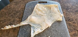 I used a sharp knife to get the skin off . Don't want to tear it .