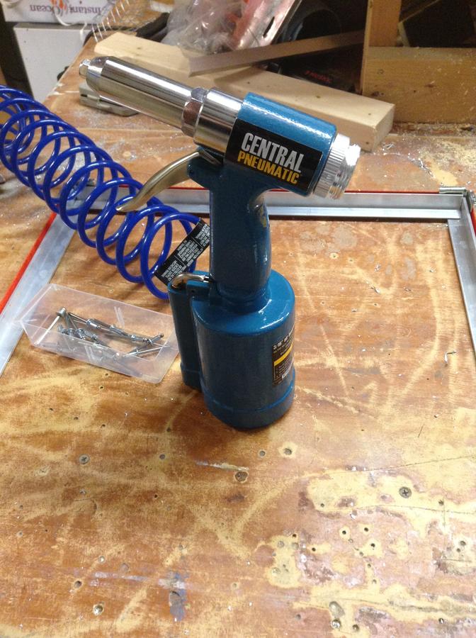 I sandwiched the mesh in between the 3/4" angle stock and pieces of 1/2" aluminum angle stock. I had to clamp them down to get a tight fit. Drilled a hole and riveted them 3 times on each side.
