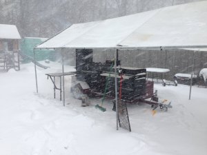 Turkey was on the menu and no snow was going to hold us back! Sorry. no actual view of the turkey. It disappeared to quickly after coming off the smoker.