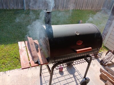 Gave Steve's Firehouse Chicken a try. Did 24 hour marinade. The Char-Griller does a good job of grilling chicken with no flare ups. I do go light on the charcoal. Flipped every 8 minutes and basted each time.