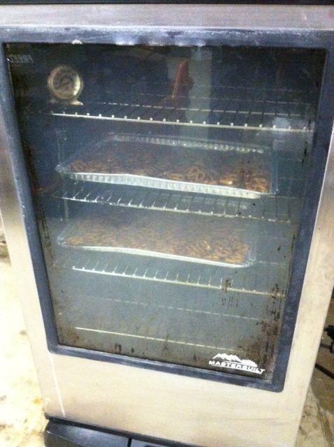 Dang nab it I just did another one but the only thing I did different was I cold smoked mine - no heat but I don't think that would have made a difference but maybe being warm pretzels they adheared more of the smoke,,,,