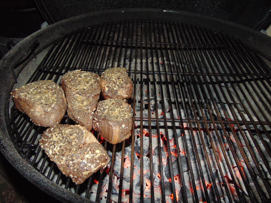 I say this meal is for two, but with at least one reasonably large appetite, for the guys. This is one cut of beef that I think most guys want to eat more than the typical 5-6oz serving size at a high-end eatery...yeah, I think too many of us have been through that. So, if you like your beef tenderloin, and a lot of it, why not do up your own instead of being disappointed and leaving the table hungry? And, how many places smoke & sear their tenderloin over coals? Secondly, there will be plenty of vegetables to go around, as it takes two gill-pans to cook the potato & pepper mix.