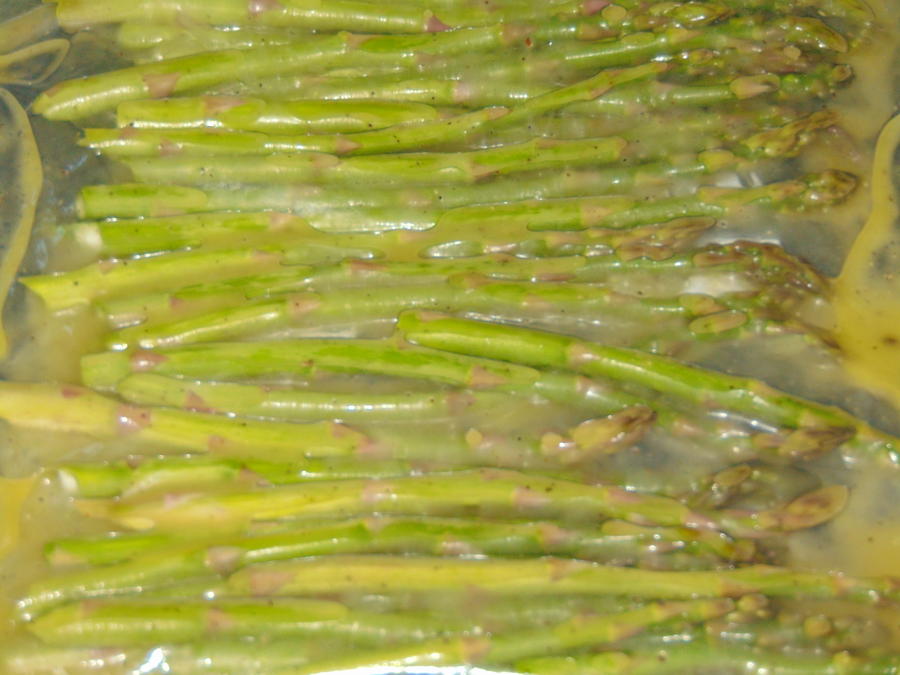 1/8 cup Canola Oil (EVOO may overwhelm the mild-flavored Asparagus, but I'll try it)