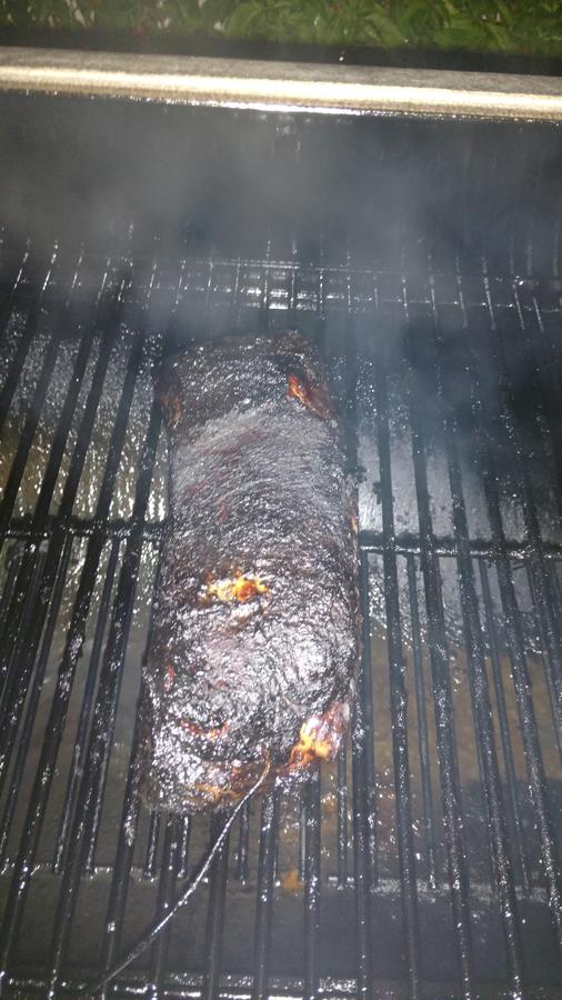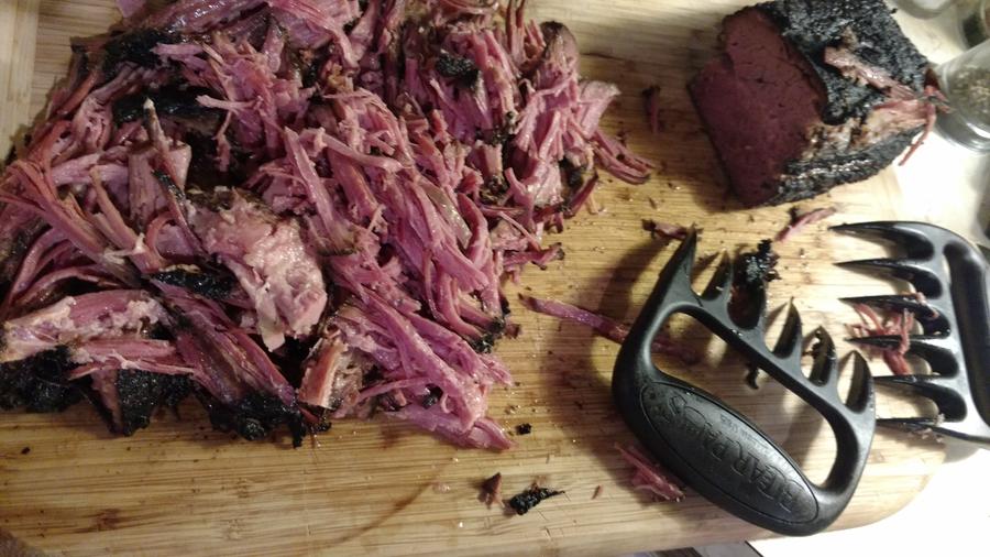 (Shortly after the brisket reached temp and before i got it pulled off the smoker, it stared to rain and my sensor for the meat probe got wet and stopped reading the temp... ugh)