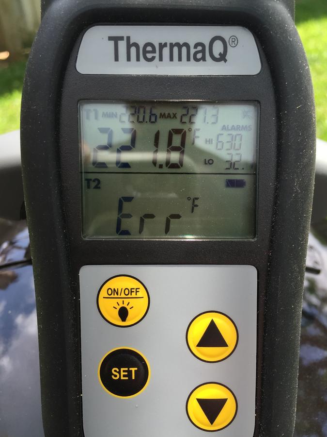 I want to stay close to 225deg, but to keep it from getting too cool, I am shooting for 230deg +/- 5deg ... I went all vents open until 210deg, closed all but 1 lower vent on the side getting the wind, left the top vent fully open ... let heat rise to 230 then closed bottom vent to 25% ... I am the kind of person that can stare at the ThermaQ for 6 hours and loose track of the day .... Unless things get out of hand, I am going to check it every 20-30min