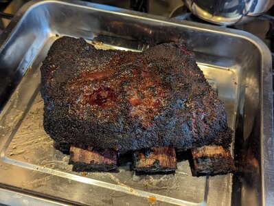 Second attempt this weekend went much better. Smoked 4 racks of beef short ribs, wrapped in butcher paper at the stall and I think i pretty much nailed it.