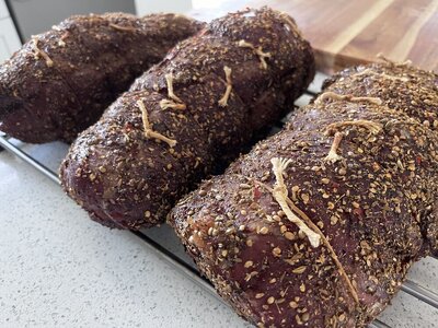 These are Coppa. I got them from my hog supplier. They range from 1.5-2.2 kg.