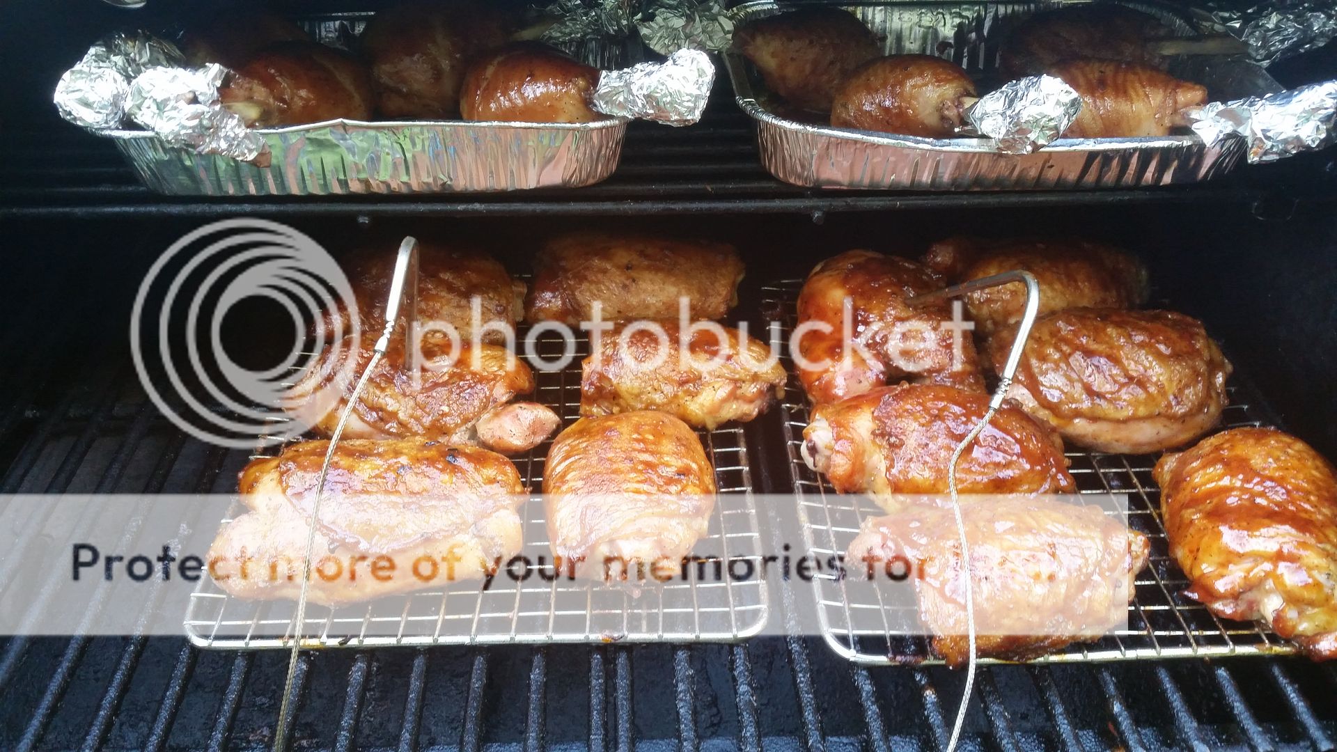 Turned out great, my friends gave big compliments, they really liked how nice and juicy everything was. The skin turned out good, not perfect but I'll take it. Sides of slaw and cold pasta salad and it was good eats! Thanks for looking!