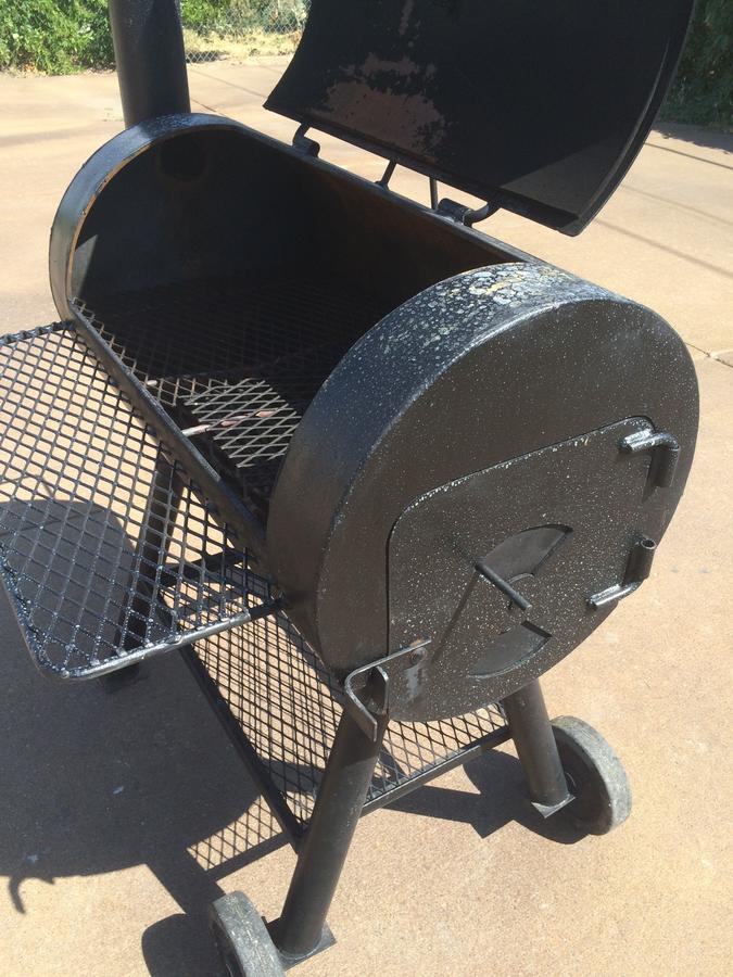 I posted this earlier in the charcoal section but wanted broader opinion. Ok here is what I have....I have an original Oklahoma Joe barbecue from the early 1990's. Made from 1/4 inch steel. It's not a smoker there is no fire box. It measure 20x36. So it's not very big. Adding a firebox to it turns out will be very expensive as well as adding shelves in the main chamber. I can do better with my current Old Country. However if I was to have the top cut in half horizontal wise, I can put a custom made Santa Maria insert on top.20x36 isn't a bad size at all. Drain hole is there for cleaning, I will mod the side vent door to be utilized for cleaning it out. This seems like a slam dunk to me. The are those that would think I am nuts cutting up an original OKJ. But that doesn't bother me. It's quality gives me a good base. Opinions?