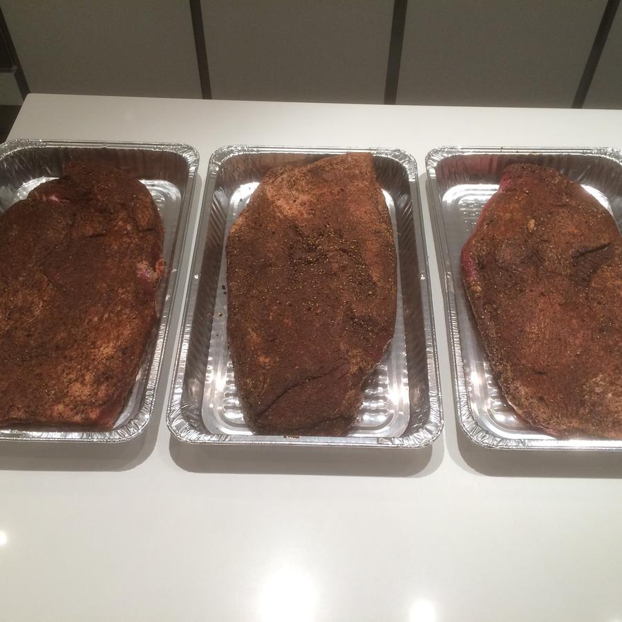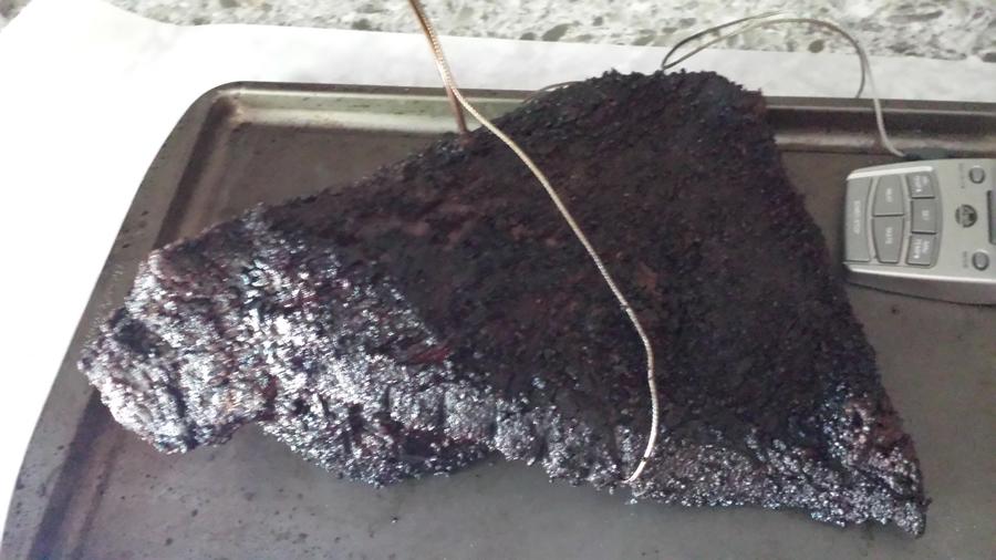 Jonny I hope you are kidding about briskets in Spokane being $9 lb. They've been around $3 for select and $6 for what they say is prime, I've been unhappy with that because briskets use to be dirt cheap. Decided to put my latest experience in here and it has to do with doneness. Last couple of briskets I've cooked to IT of 205 and they have been very tender, so decided that is the number to shoot for. Had to cook one yesterday for a company gathering, it was a 13lb brisket and cut it in half to make it a little easier to handle. Brisket was on the smoker for 8hrs, wrapped after 5, but still wasn't up to temp. Storms were moving in so took Gary's suggestion and put it in the oven. Took another 2 1/2 hrs with the end with the point and 4 hrs for the flat to hit 205, pulled it and stuck in a cooler for 2 hrs (3am) to rest it and then into the fridge. Got up this morning and brisket looks dry and burnt, guess need to go for an IT of 200 next time. I've heard every brisket is different but I'm really starting to believe it!