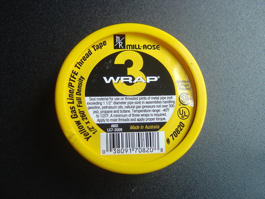 One thing I learned at the plumbing supply place is that the normal thread wrap tape (typically in a blue plastic case) is no good when dealing with gas. They say it will break down with time and leak. They have another tape made specifically for use with gas, which came in a yellow plastic case.