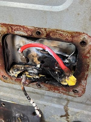 I don't know if these photos help at all, it was hard to get good pics. Basically, both wires and tabs have corroded or burned through multiple times, and I've actually spliced them.