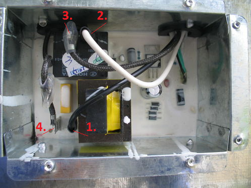 1. Heating Element NEUTRAL Black Braided wire - Comes out of upper LEFT hole