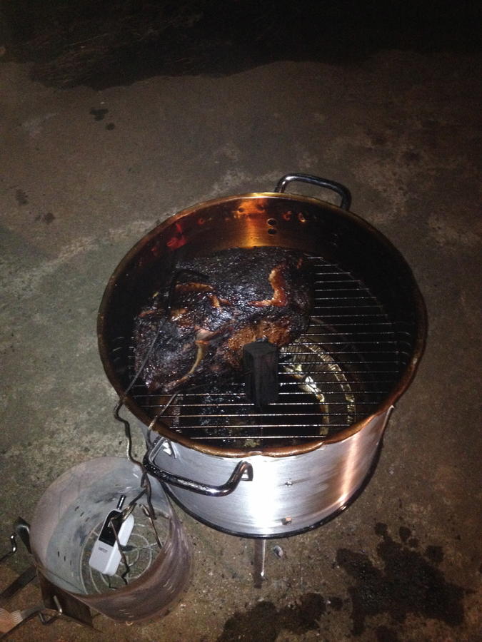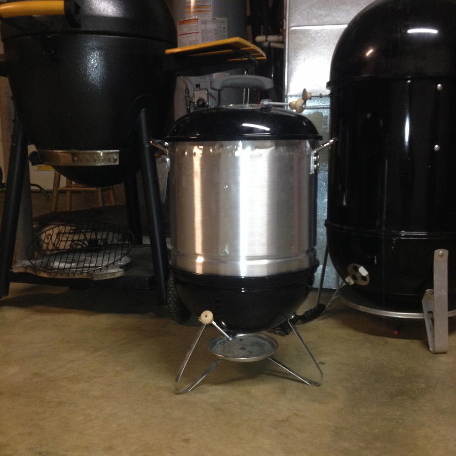 Found the pot at Target for $21. Only issue I had was the top didn't fit on so I crimped the edges. Cosmetically I can't say she's pretty but I guess it has some character now and that sucker fits on pretty tight now. I added the handles on the vents because they did get hot and added the heat diffuser as welI. had burgers planned for the grill but I fired the mini up and cooked them on it. they turned out nice; the smoker seemed to be sealed up nice and tight.....It looks promising for my pork shoulder on Saturday.