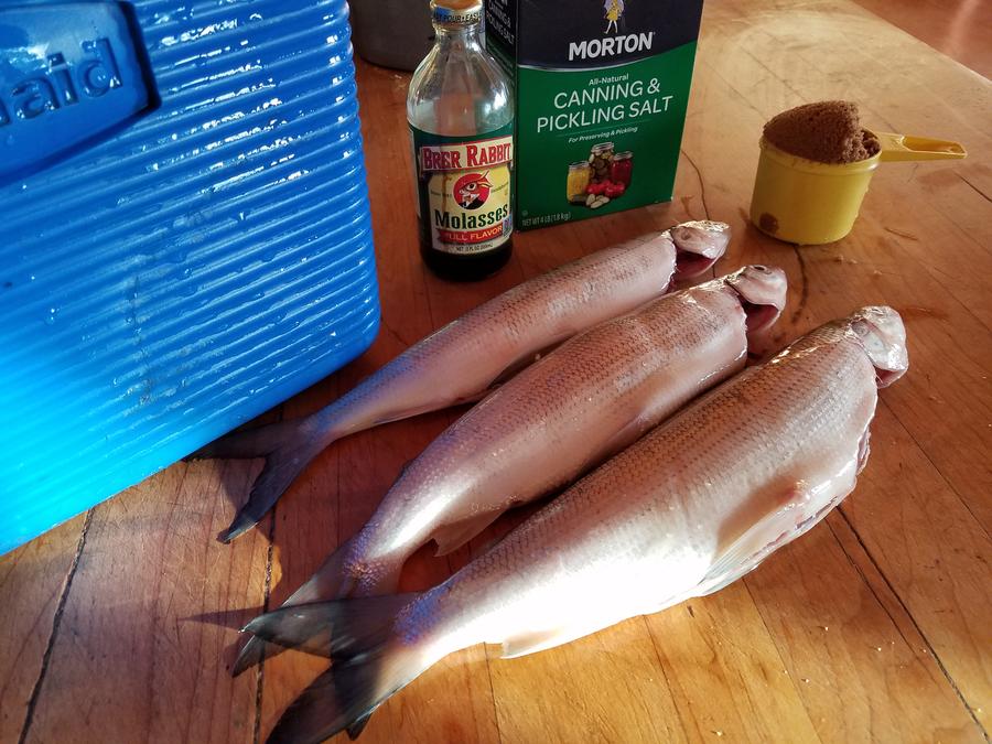 Started with a 4:1 brine for the fish and added some molasses to up the color a little.