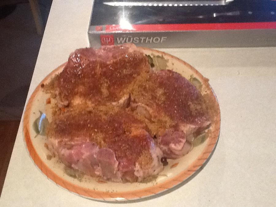 It's going to be 40 degrees tomorrow so I thought I would make some smoked chops. I bought 3 bone in thick cut chops and put them in a cure/brine.