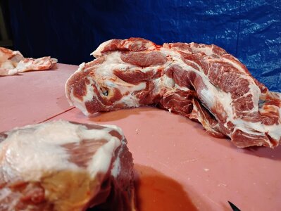 we are watching this thread....come on with it,,,Picked up the half pig, ham, and head today. Half pig weighed 112#, little on the small side, but not by much...it'll work. Got everything set up under the carport ready to start cutting.