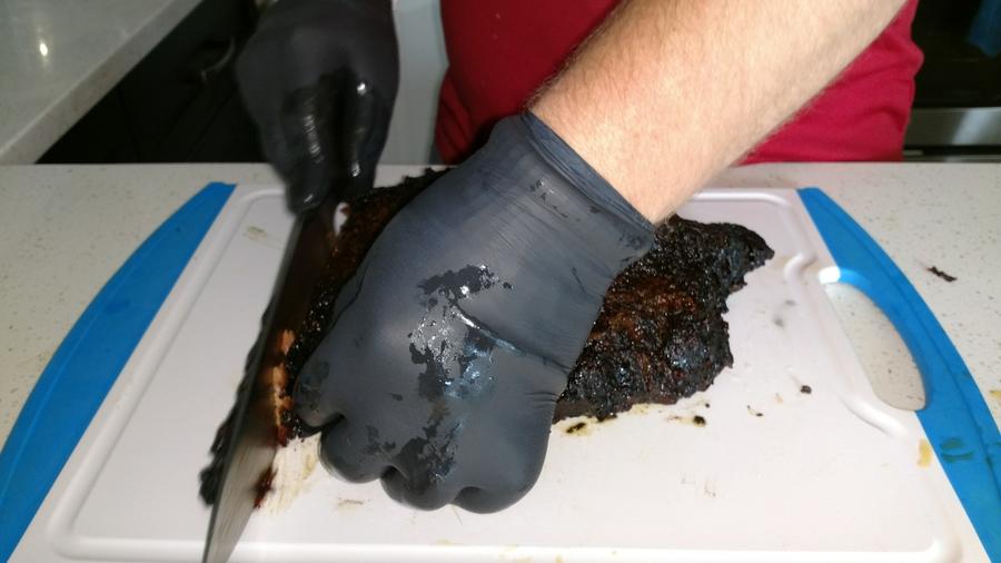 The brisket was very tasty and uber tender. Because it was a point it was hard to get real nice looking slices being that the grain was going 2-3 different ways each few inches into the meat I got, but I still think it looks real nice!