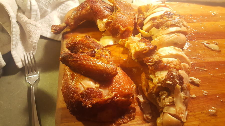 The whole chicken was just injected with creole butter and is also marinating now: