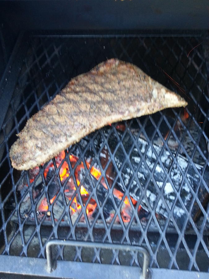 Smoked a USDA Choice tri-tipthis afternoon. The rub is brown sugar, SPG, cayenne, & a touch of Chipotle Chile powder & all spice. Seared it over my pecan fire