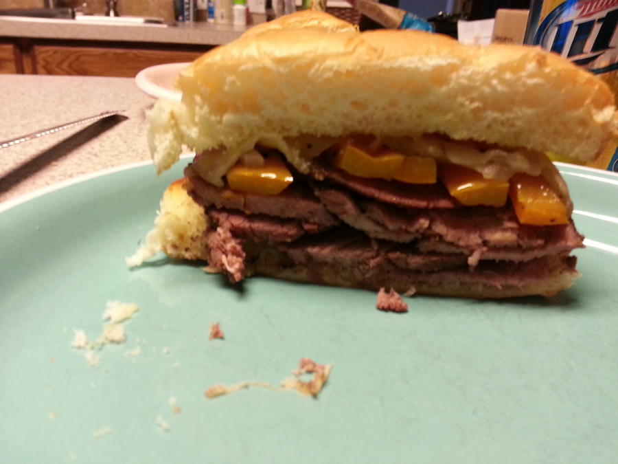 and let it rest 10 minutes while I grilled peppers & onions. Cut thin with an electric knife