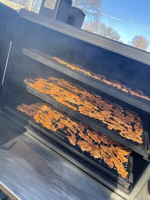 It’s a little over 2 years old, has the push/pull handle, 5” casters currently installed but also an extra set of 8” casters (not pictured), 1/2” firebox, 3 sausage hanging rods, stainless 12” fold down front shelf, fire management blower port, extended burn charcoal “S”basket (not pictured), brass ball valve, single probe port. The SHB fire management basket, and 1/4” ash pan in pics are not included with the sale but may consider selling for additional $$. Reason for selling is I have another cooker on the way.