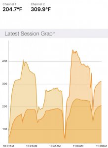 Looks like you were able to get the temps to be consistent for a period of time... That's good... The 200 degree difference is AMAZING....