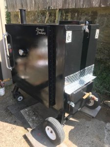 Smoker is in great shape! Had stumps make me replacement shoot door, slam latch, new firebox grate and new latches. Mine has 3 racks and 3 runners spacing is about 7 inches apart