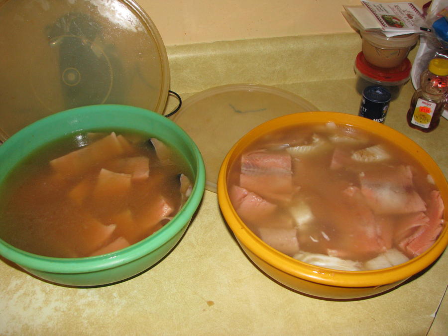 I know ive got two boxes of the Hi-Mountain fish cure around here somewhere but i guess ill have to wing it for the seasoning.