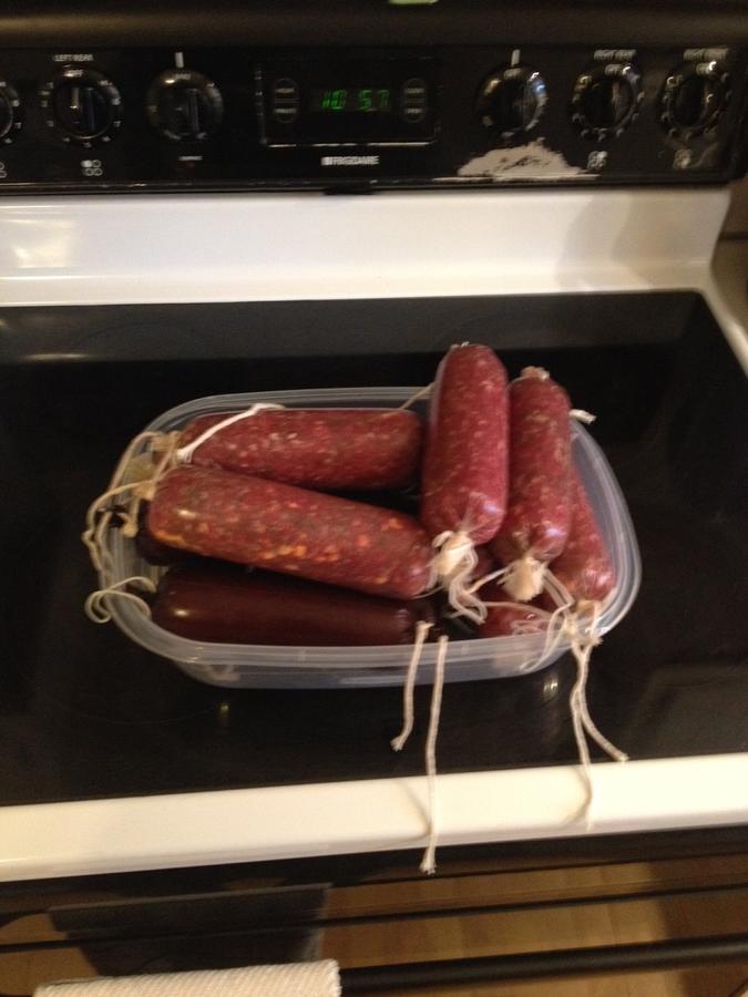 Once the casings were all stuffed, I put them back in the fridge overnight.