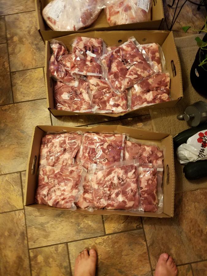 Had a small gilt that I did not get sold and she was the last one of that group so instead of feeding her longer I decided to butcher her. Purebred Berkshire! Kept the whole loins, ribs, shoulders and belly...ended up cutting belly up also due to lean and thin. Not surprising in the she was only around 200#